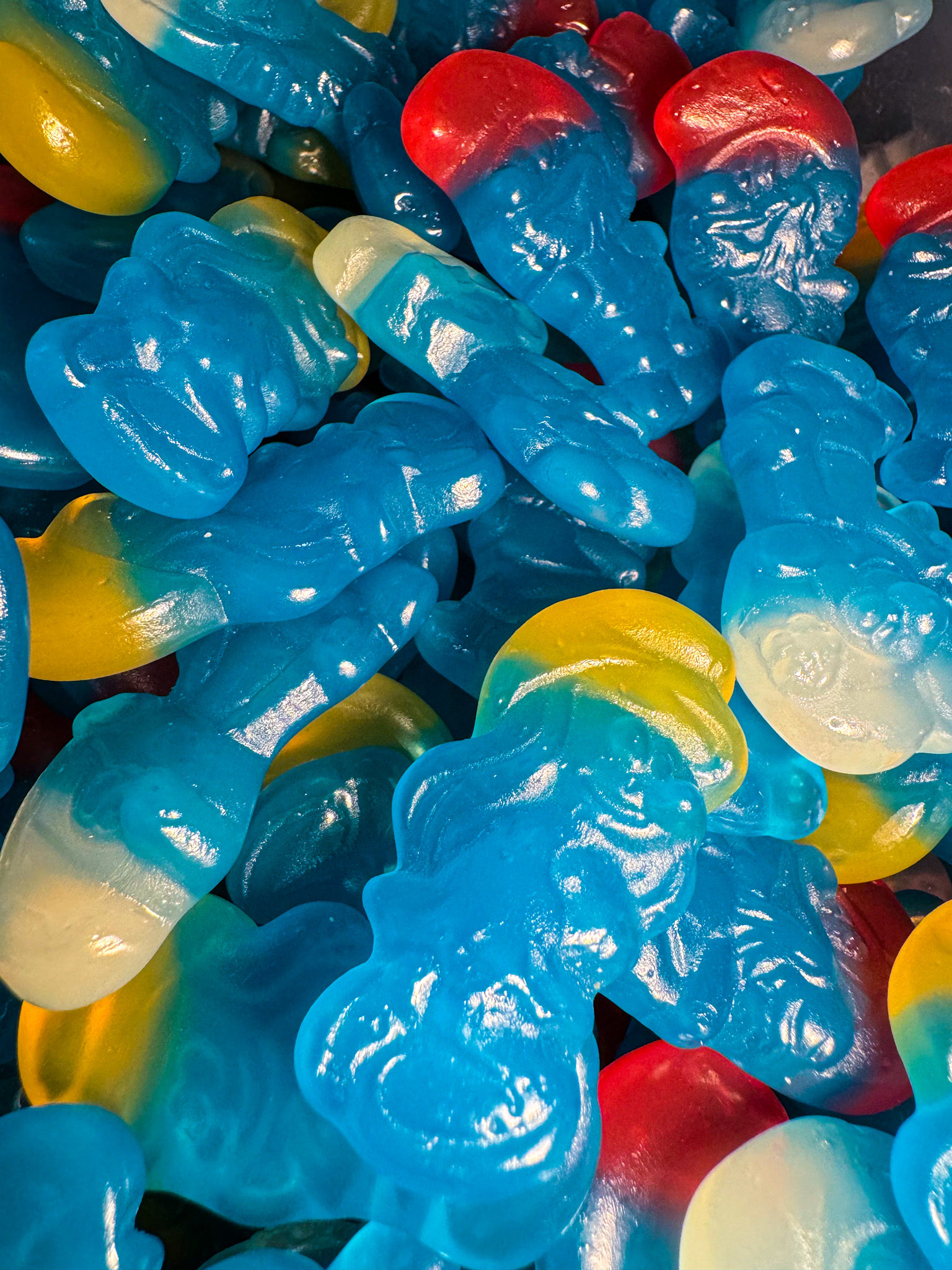 Glucosestroop; suiker; kracht; zuurteregelaar: citroenzuur; aroma; Coatingmiddel: bijenwas wit en geel, carnaubawas; fruit- en plantenconcentraten: saffloer, vlierbes, sinaasappel, zwarte bes, citroen, aronia, druif; vlierbessenextract; kleurstof: indigotine.